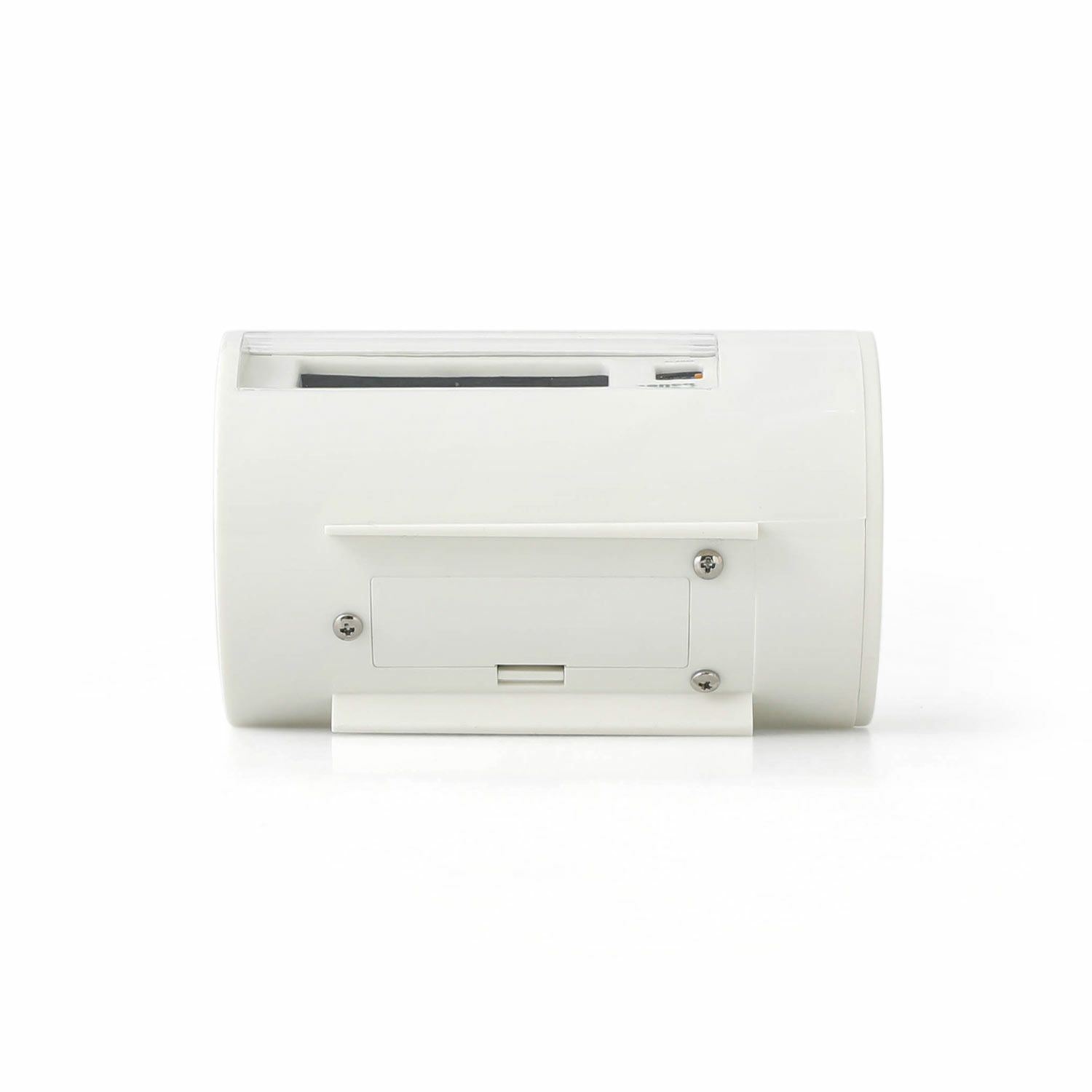 丸みのあるフォルムが特徴的。表示は時・分(12H表示)と、右側にアラームの設定時刻が表示されています。
