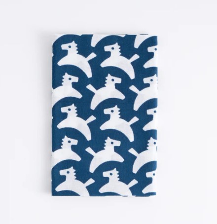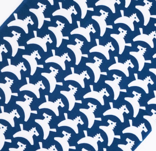 一列になって進む馬をシンプルな連続模様にアレンジしました。 駆け上がる姿は上向きで良い一年への願いを込めています。